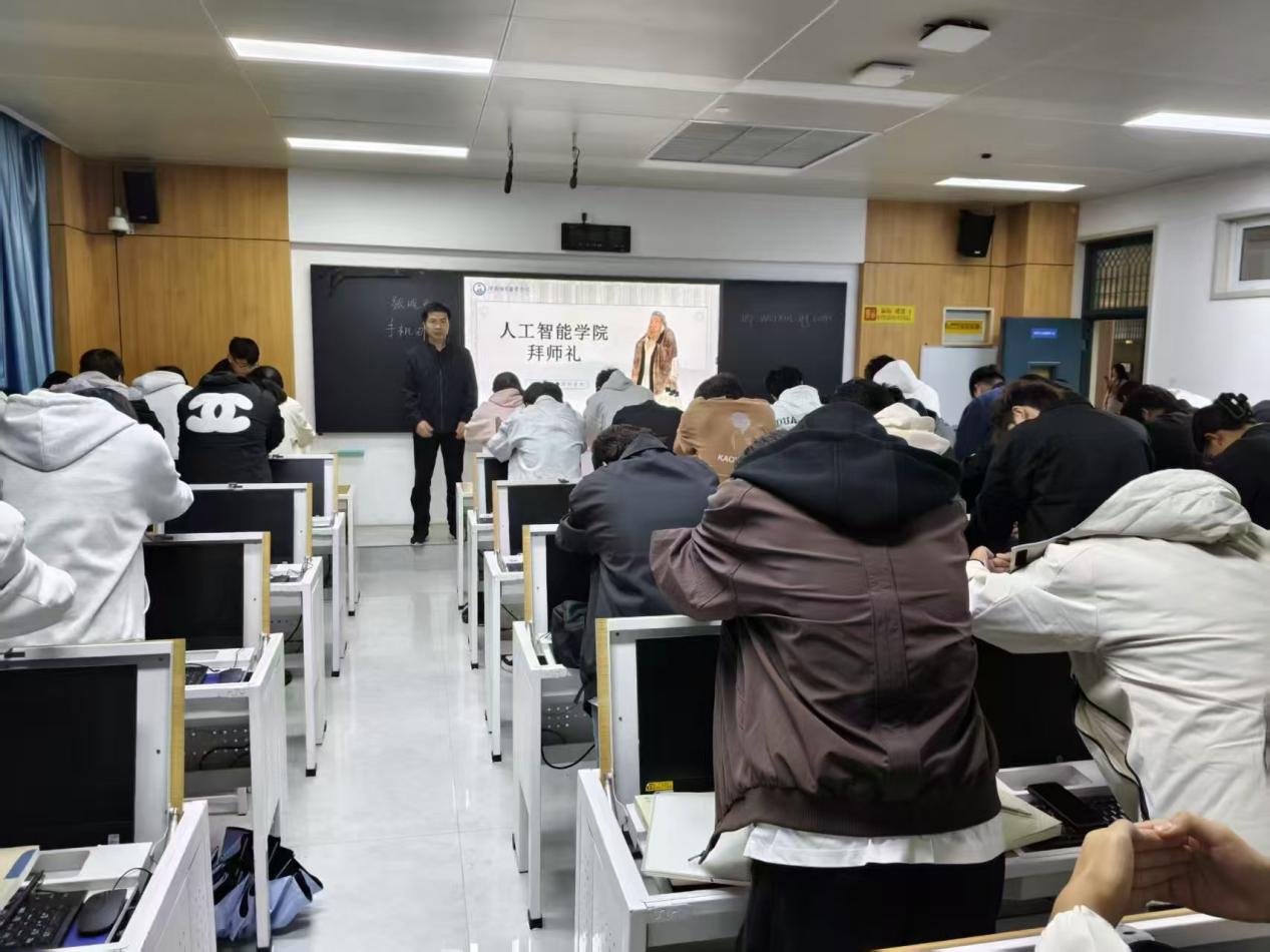 人工智能学院拜师礼仪式在悠扬的礼乐声中拉开帷幕。学子们依次向老师行鞠躬礼,学子们的眼神中闪烁着对知识的渴求与对未来的期许,他们以最诚挚的姿态表达对师者的敬仰与尊师重道的初心。